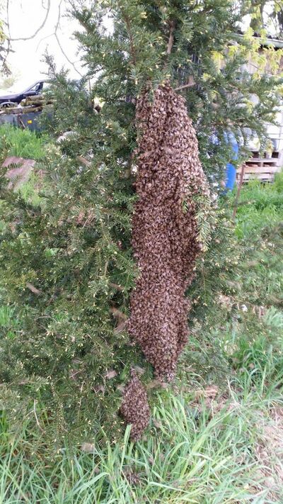 Ende April entdeckten wir einen Schwarm. Dieser wurde freudig begrüßt und in eine Beute eingeschlagen.